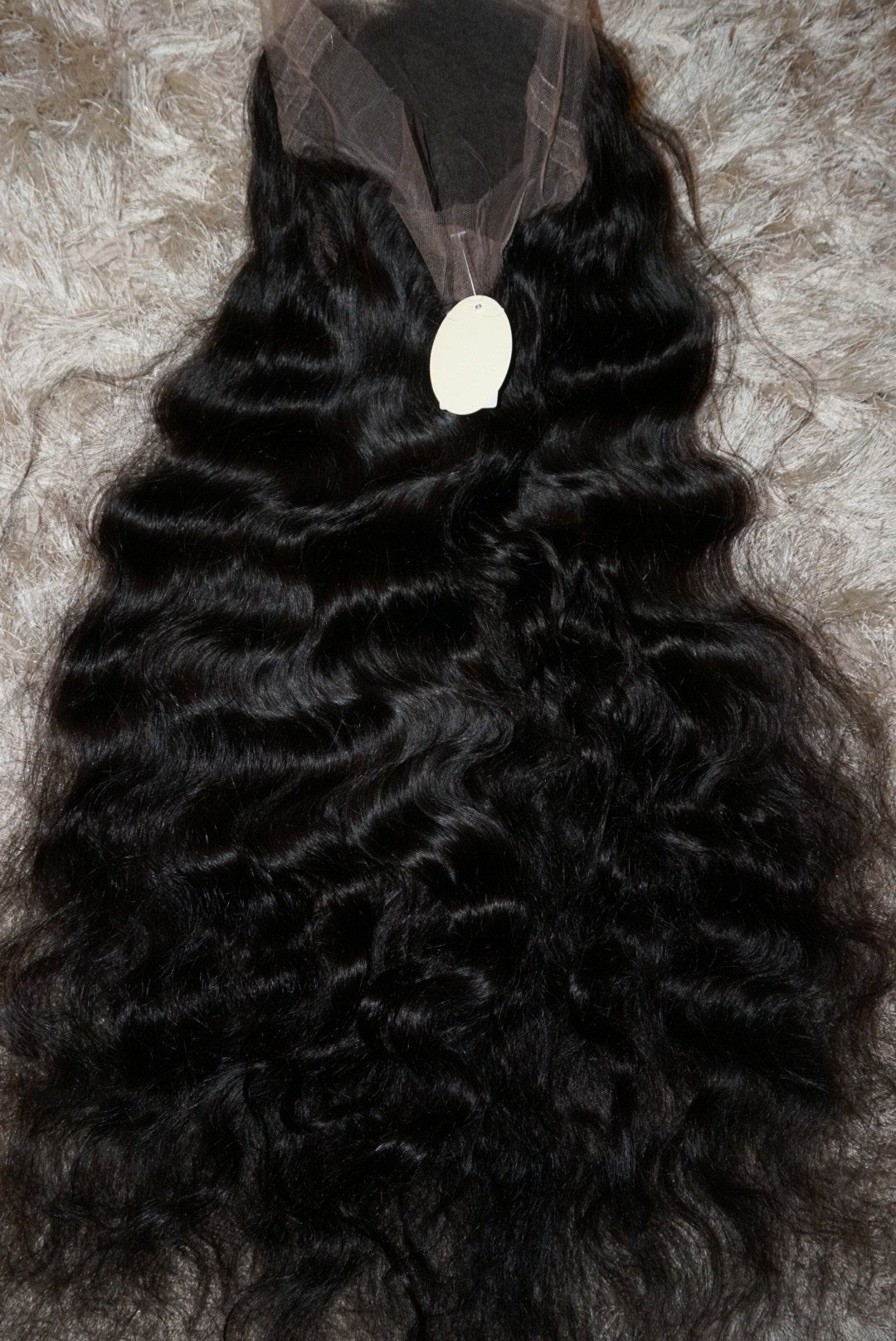 FULL LACE WIG made with 100% indian natural wavy hair that can be lifted to any level. These wigs have been pre-plucked but does require minimal customizing. The knots aren't bleached.  Lace type is Swiss lace and the color is light brown. We carry multiple hair types and textures from natural brown wavy, to 613 wavy. The lace can be tinted to match any skin complexion. The density on these units are 130% density to allow for the most natural parting space throughout the wig. We recommend adding one bundle for a more luxurious and fuller install. This hair blends with any hair type and can withstand heat in excess of 450 degrees Fahrenheit. ***PLEASE ALLOW ONE TO TWO WEEKS FOR PROCESSING AND DELIVERY***